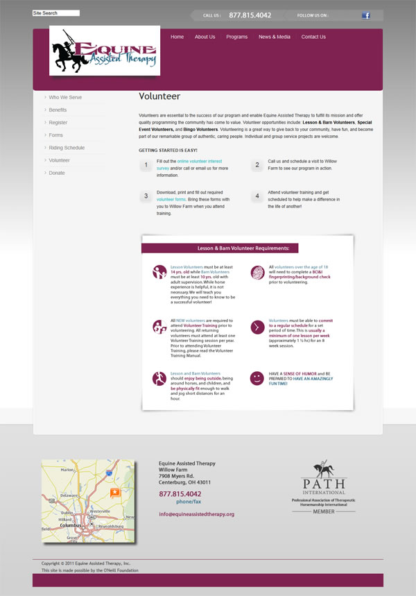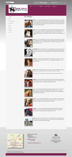 One of Central Ohio's esteemed therapeutic riding organization; Equine Assisted Therapy required a new image, a website which reflected that new brand as well as a complete overhaul of their entire image. This website is part of that complete package which John Valera designed alongside the business card and brochure. You can visit www.equineassistedtherapy.org.to view this website.